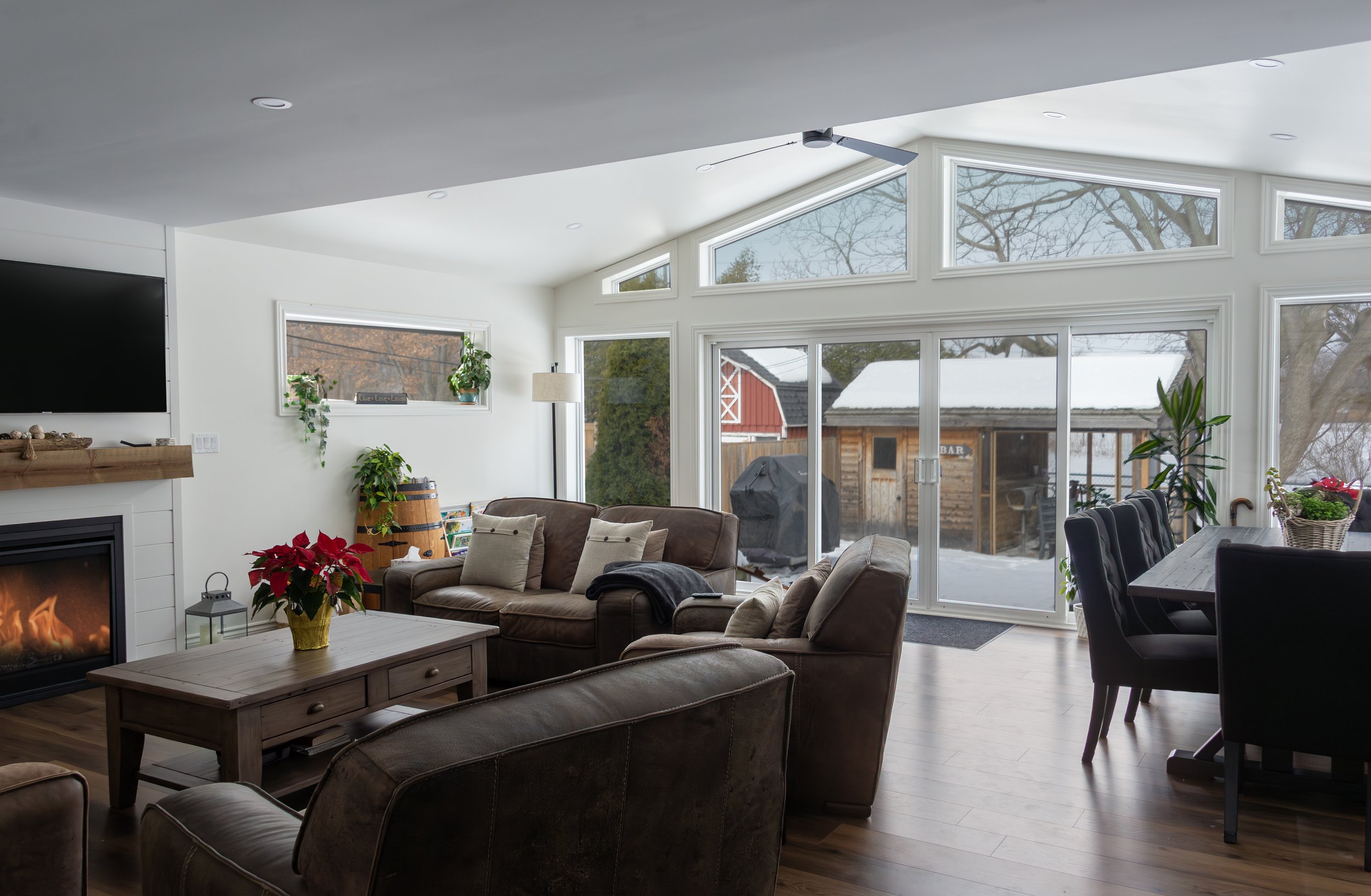 From foundation through framing and finishing, every detail was handled with care so the new space blended naturally with the original structure. The vaulted ceiling and oversized windows bring in light from every angle, while thoughtful proportions keep the room feeling warm and livable—not just impressive.
