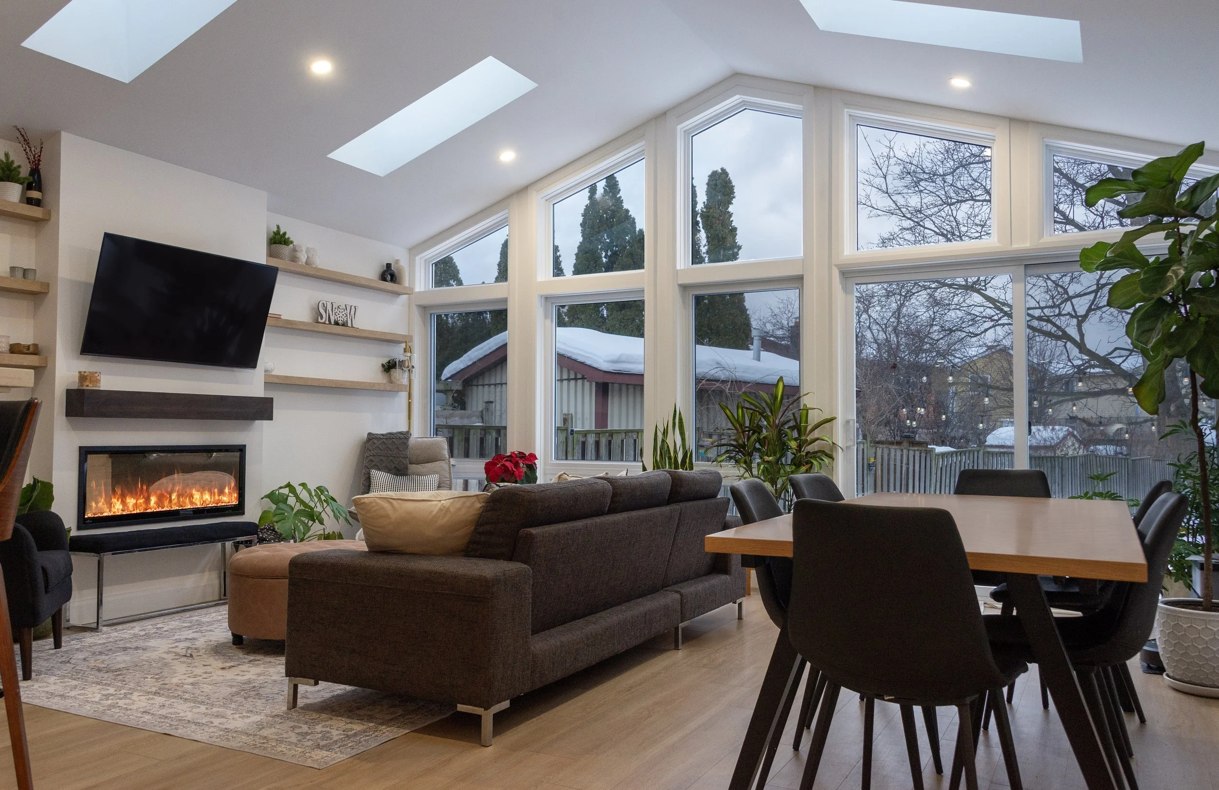 Today, it’s an easy extension of daily life. A bright place to start the morning. A comfortable spot to gather in the evening. Even in the middle of winter, the space feels open, connected, and right at home.